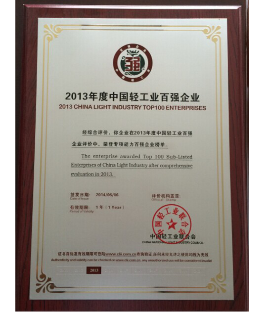 中國輕工業優秀成長百強企業